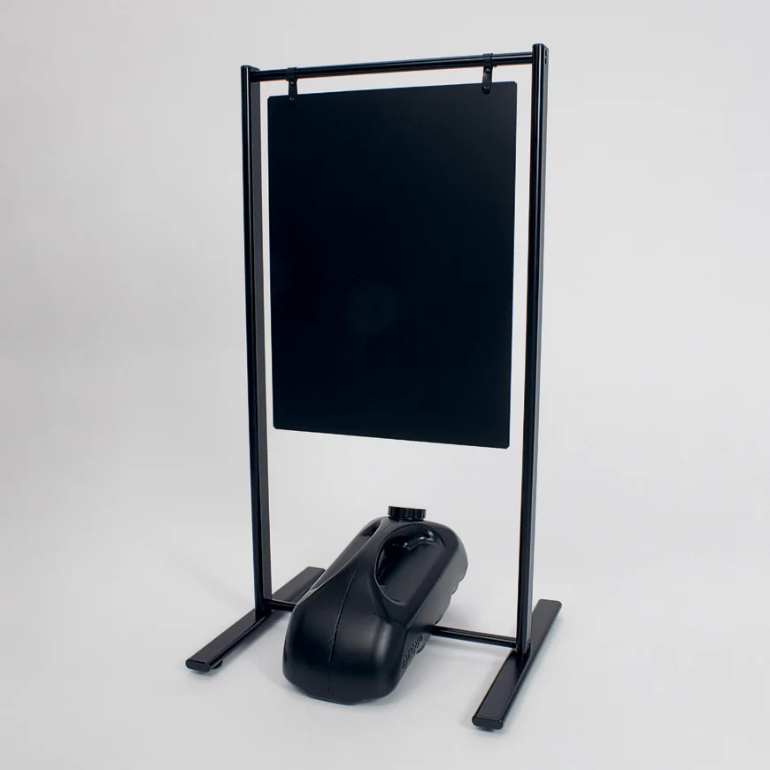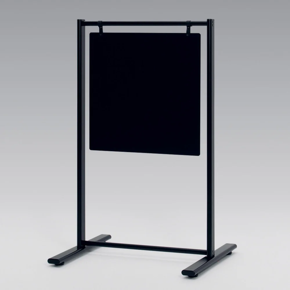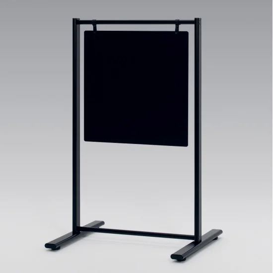 ブラックのアルミ枠T型スタンド看板。フレームレスタイプで面板が引き立つ。