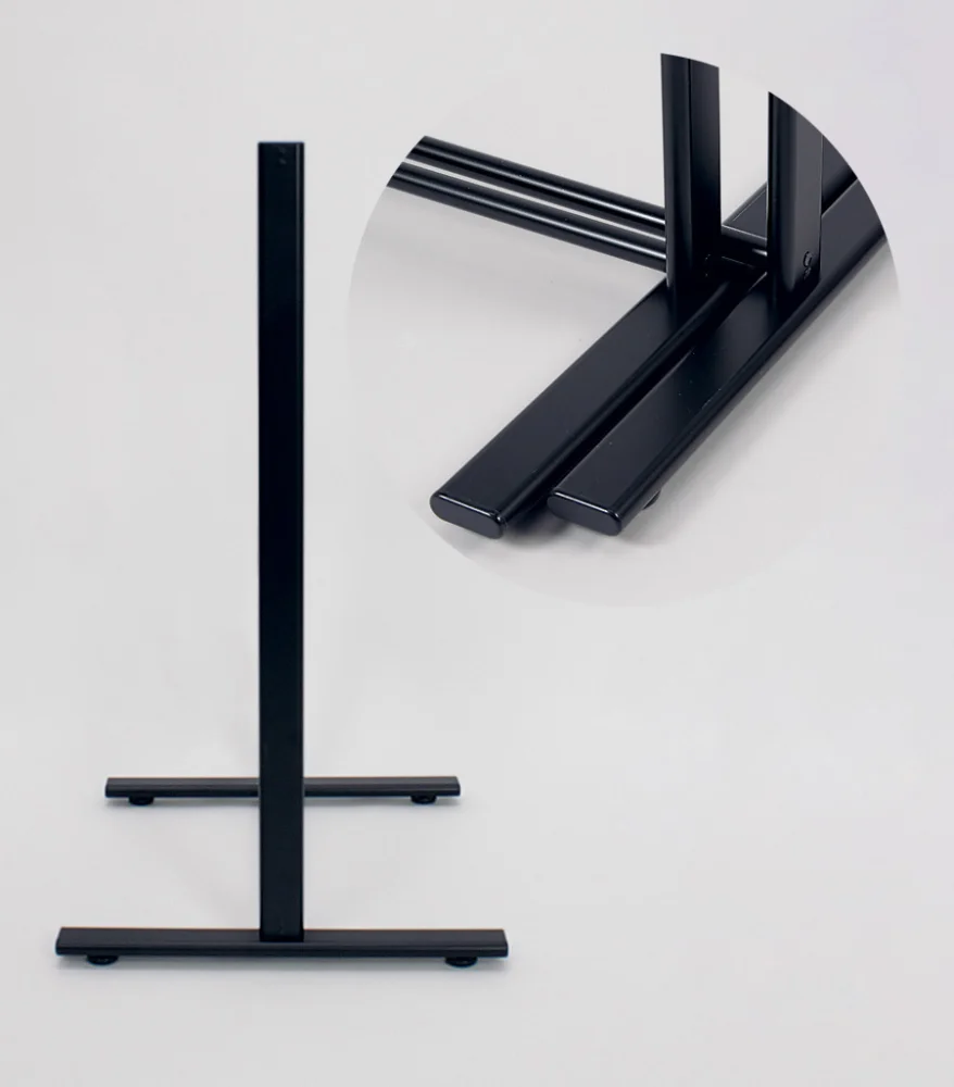 - ブラックのアルミ枠を採用した、フレームレスタイプのT型スタンド看板です。