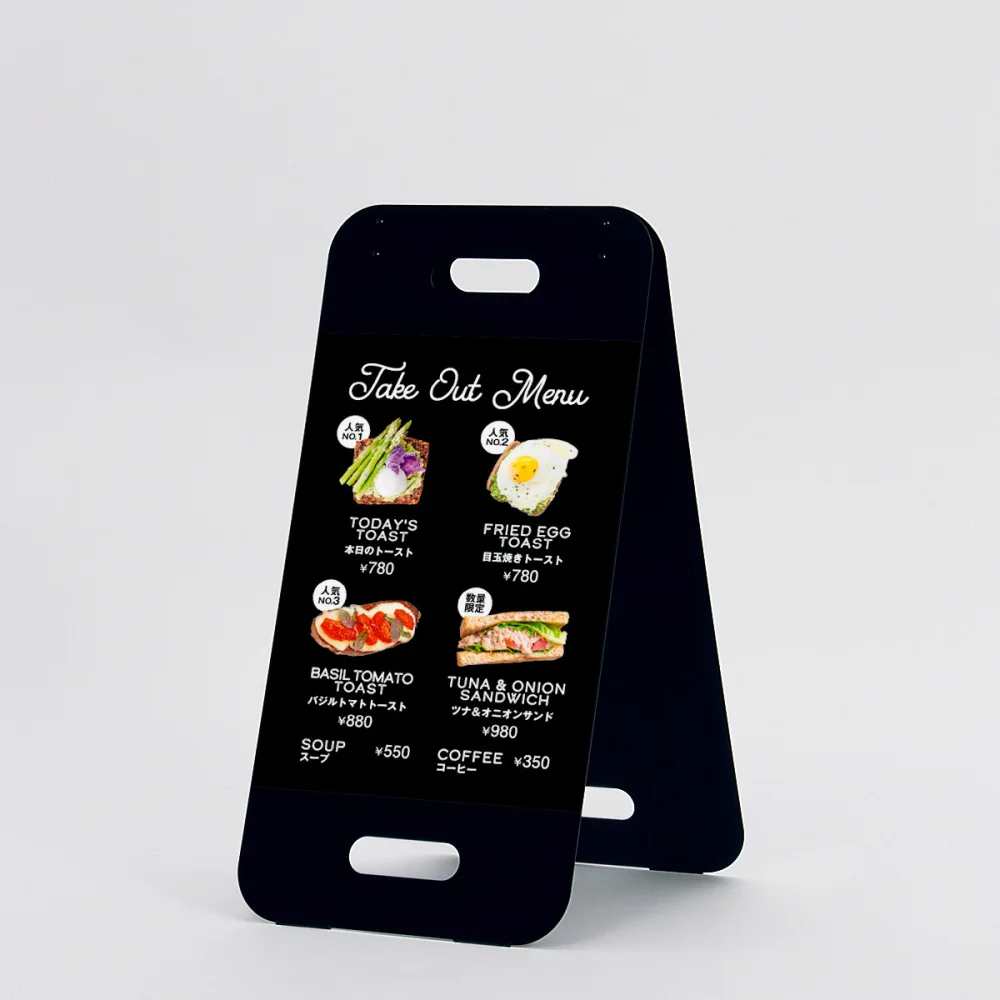 - 飲食店のメニュー看板、駐輪禁止などの注意喚起看板、キッチンカーの店頭看板など、幅広い用途におすすめです。