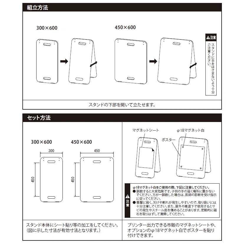 - スチール板を採用したコンパクトなA型スタンド看板です。