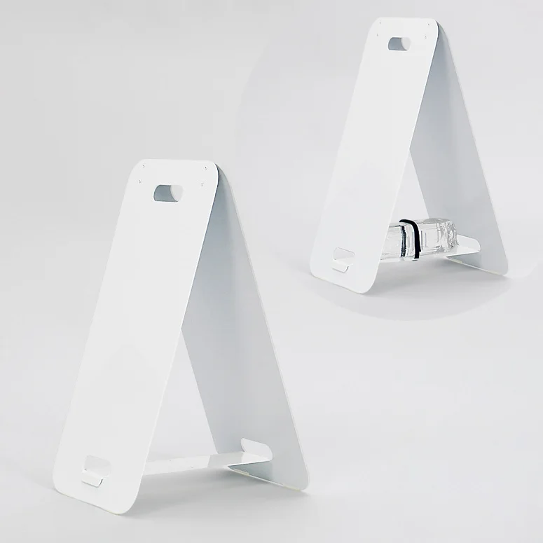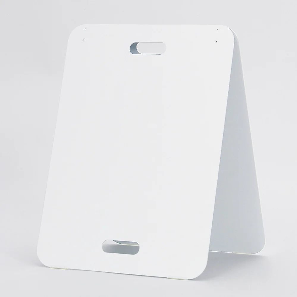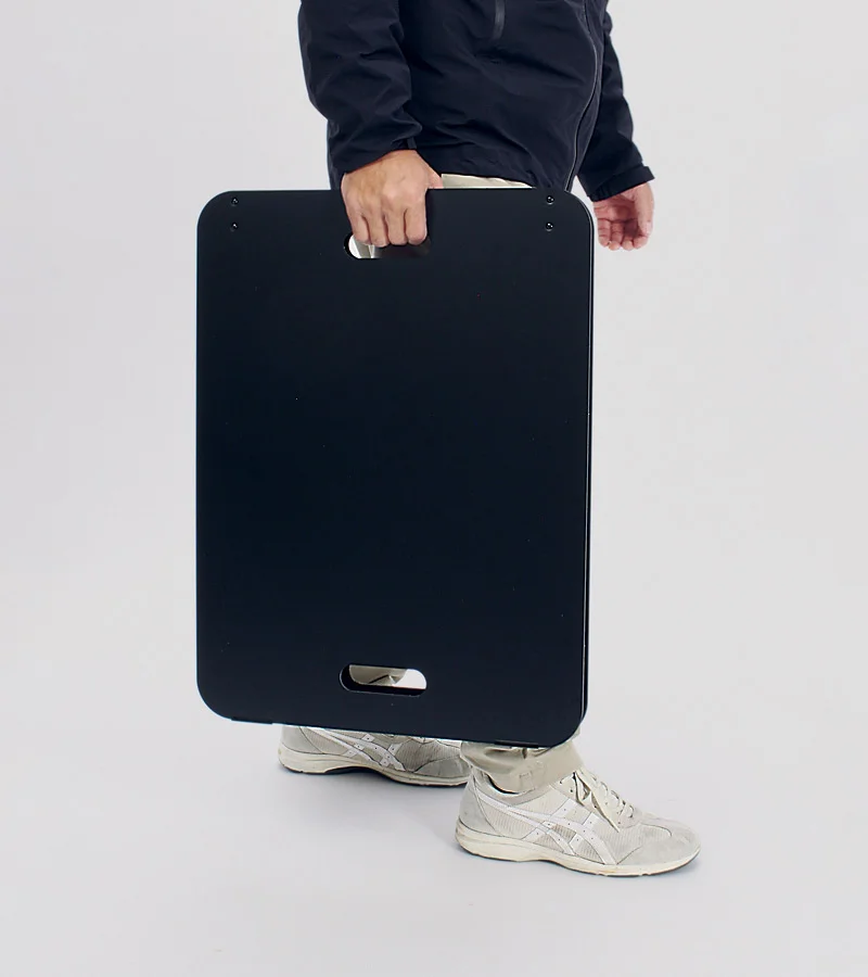 - カラーはホワイトとブラックの2色展開。面板サイズは300×600mmと450×600mmの2種類。面板には3mmアルミ複合板を2枚使用。両面仕様で折りたたみ式です。