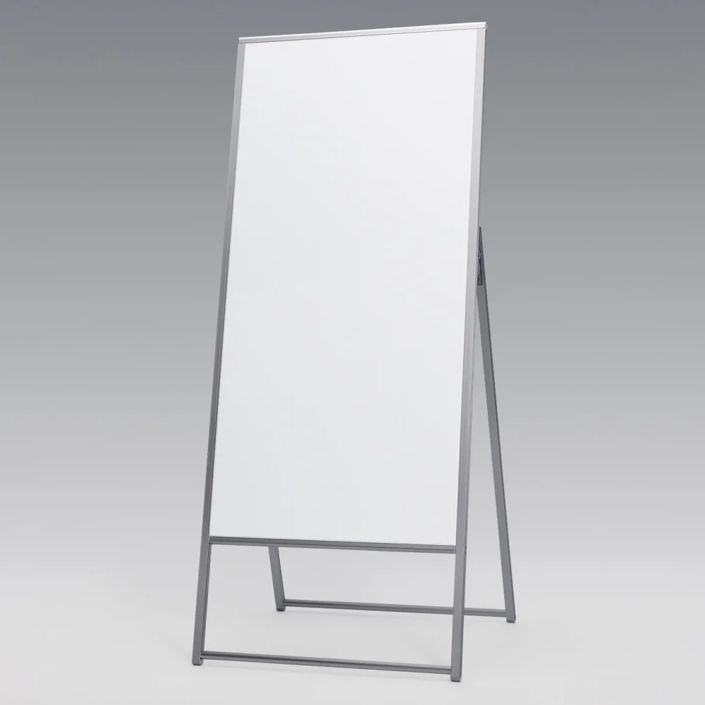 - ロープライスなアルミ枠の人型片面スタンドです。壁を背に設置するタイプで、細身のシンプルデザインが様々なシーンにマッチします。