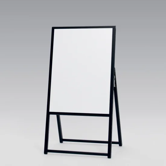 - ロープライスなアルミ枠の人型片面スタンドのブラックタイプです。壁を背に設置するタイプで、細身のスッキリデザインが店舗から施設まで幅広いシーンにマッチします。