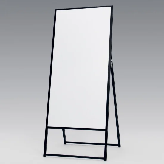 - ロープライスなアルミ枠の人型片面スタンドのブラックタイプです。壁を背に設置するタイプで、細身のスッキリデザインが店舗から施設まで幅広いシーンにマッチします。