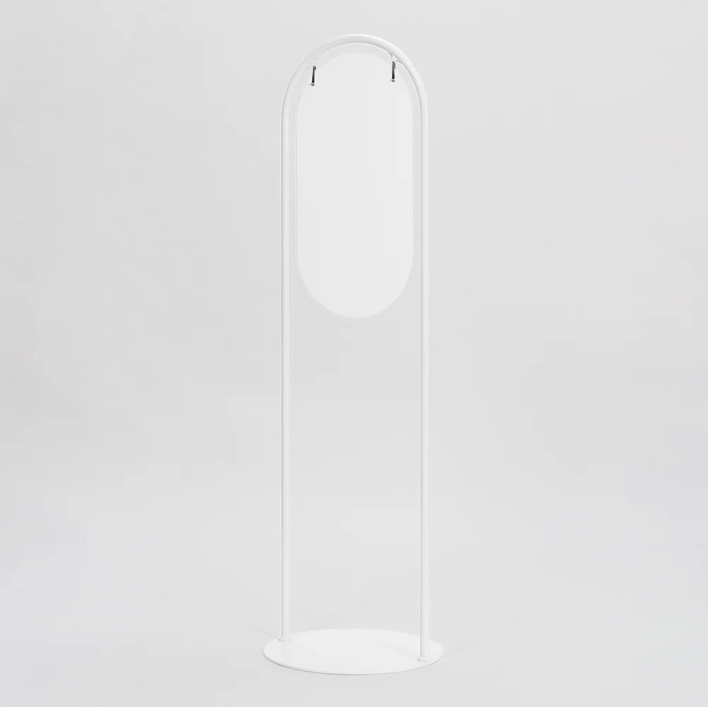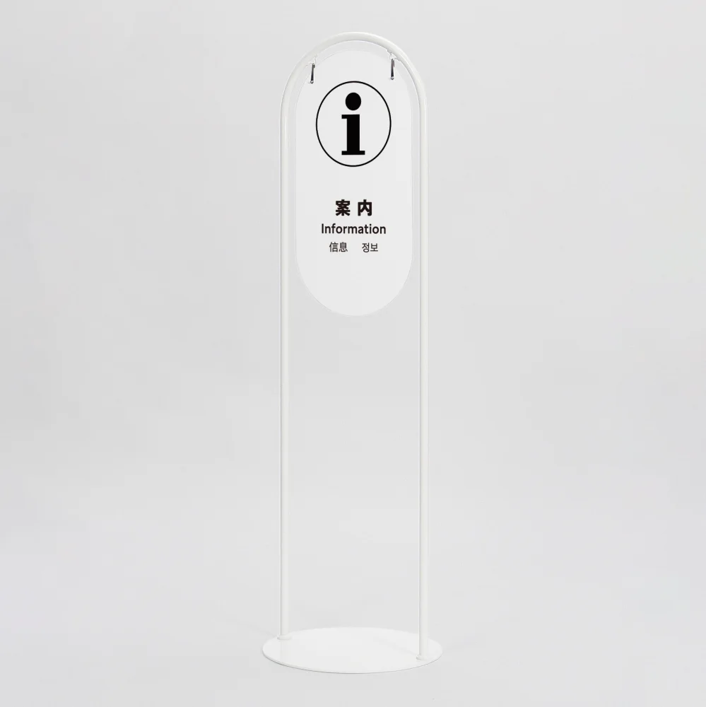 スリムで丸みのあるシルエットが特徴のT型サインスタンド。空間に馴染むデザイン。