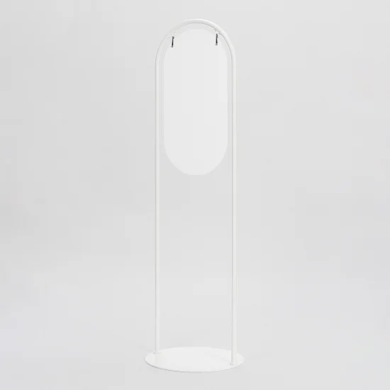 - スリムでありながら強度のあるフレームに、円形と楕円形の丸い面板を組み合わせた個性的なデザイン。角のない柔らかなフォルムが空間に優しく馴染み、表示内容をさりげなく引き立てます。