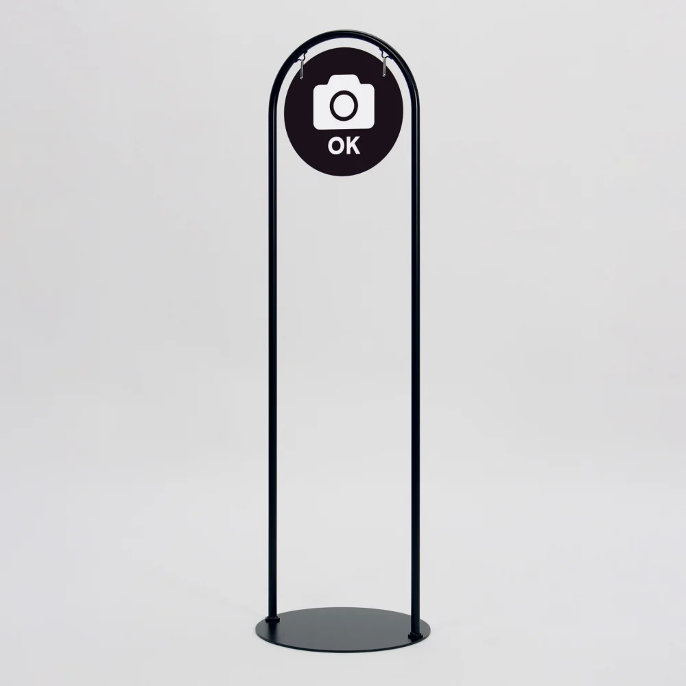 スリムで丸みのあるシルエットが特徴のT型サインスタンド。空間に馴染むデザイン。