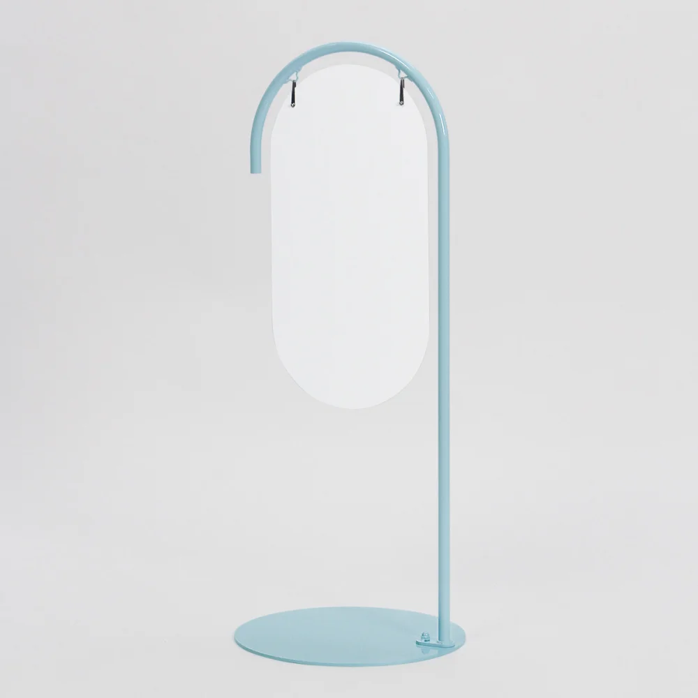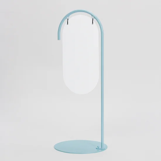 - ピンク・グリーン・ブルーのカラフルな3色展開が楽しい、フラッグ型サインスタンドです。