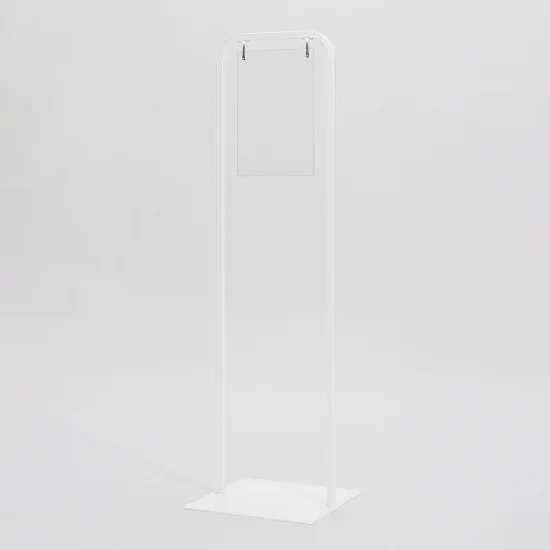 - スリムシルエットのT型サインスタンド。透明ファイルにソフトをはさみ込むタイプで、表示の差し替えが手軽に行えます。