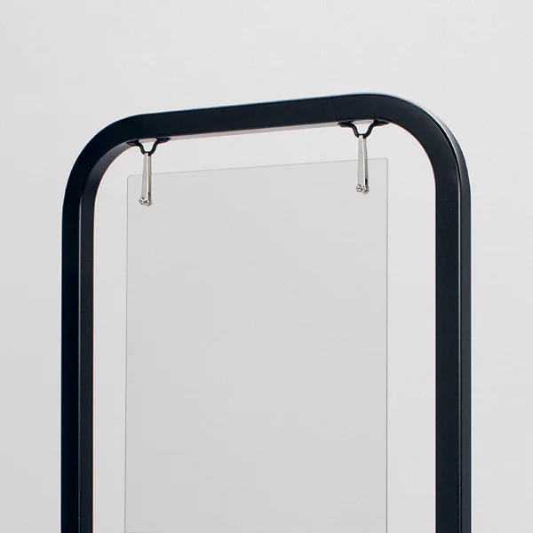 - 空間に馴染みながら表示を引き立てるデザインが魅力。透明ファイルの横からポスター等を差し込んで交換できるので、タイムリーな告知やこまめな情報更新に最適です。