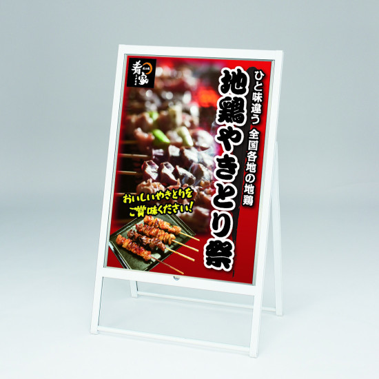パネルにセットしたポスターを差し替えるタイプのスタンド看板。