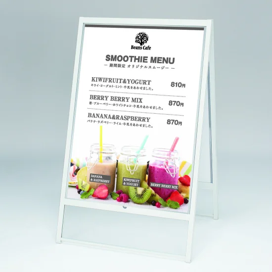 パネルにセットしたポスターを差し替えるタイプのスタンド看板。