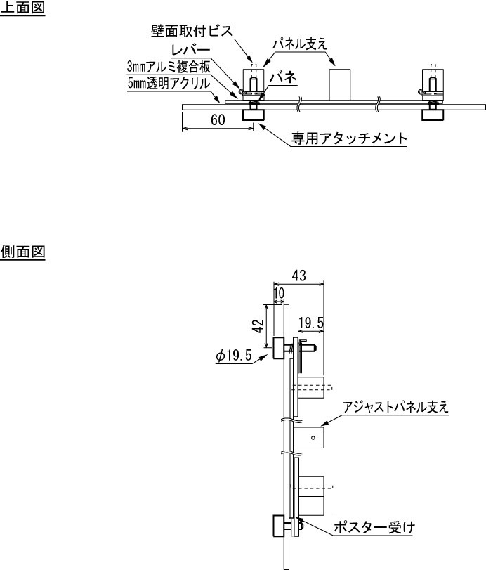 - 5mm透明アクリル/3mmアルミ複合板