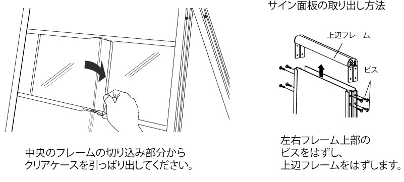 アルミ製なので軽くて上部。シンプルでおしゃれなA型両面使用。付属のクリアケースに不動産の物件案内をセット。上部サイン面に店名や案内文を貼って使うことが来ます。