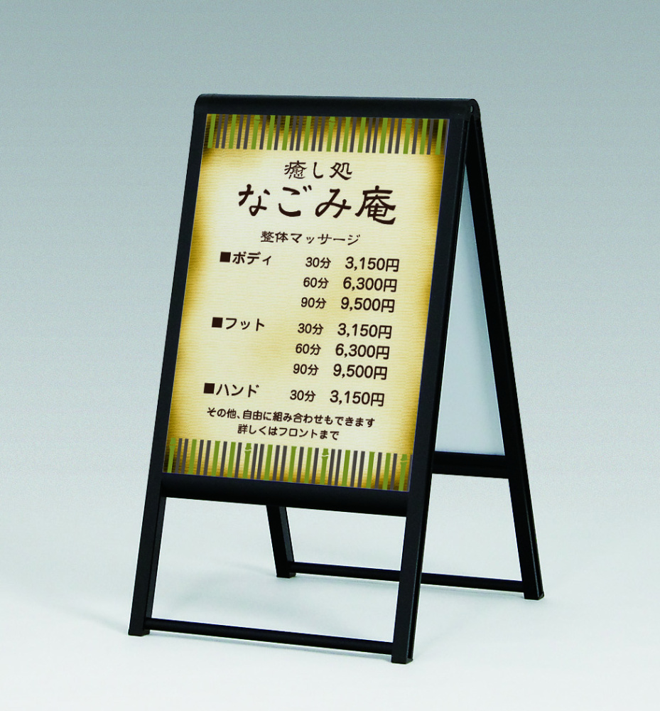 スタンド看板 アルモード 240 屋外用 両面 ブラック W450×H600を使った看板デザイン例のご紹介!
