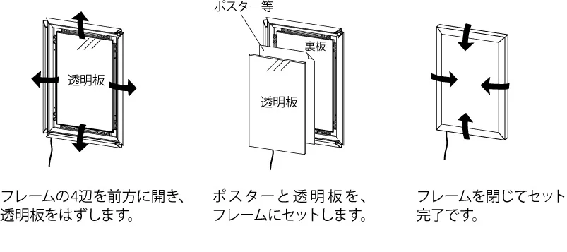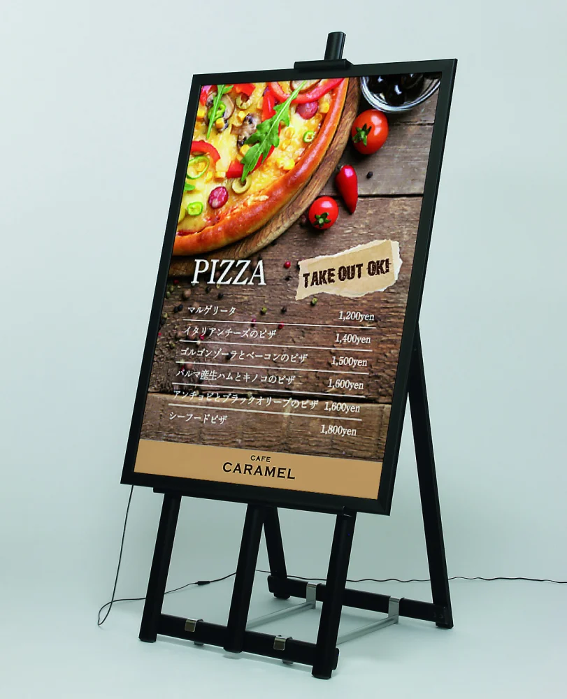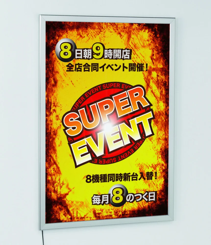 薄型でフラットなデザインのLED内照パネル。入れ替え簡単な4パカオープンフレーム。明るくきれいな発光でPR効果があります。