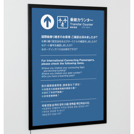 薄型でフラットなデザインのLED内照パネル。入れ替え簡単な4パカオープンフレーム。明るくきれいな発光でPR効果があります。
