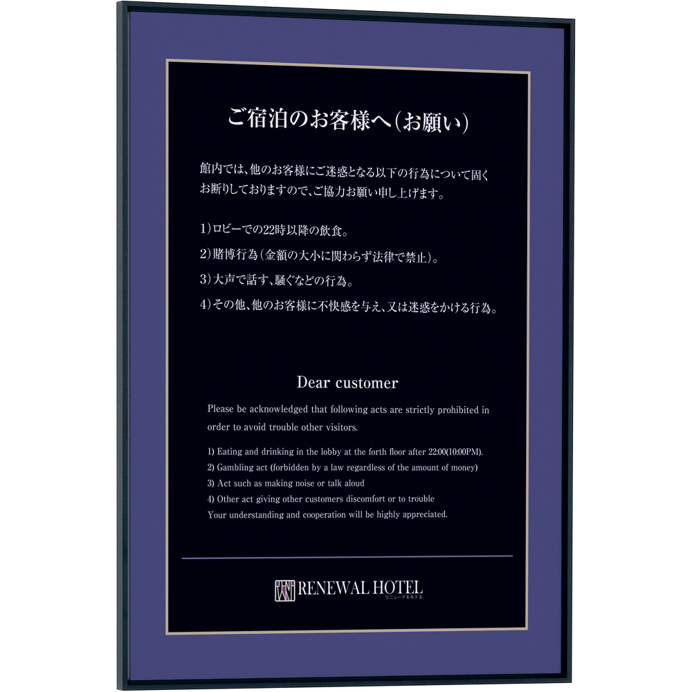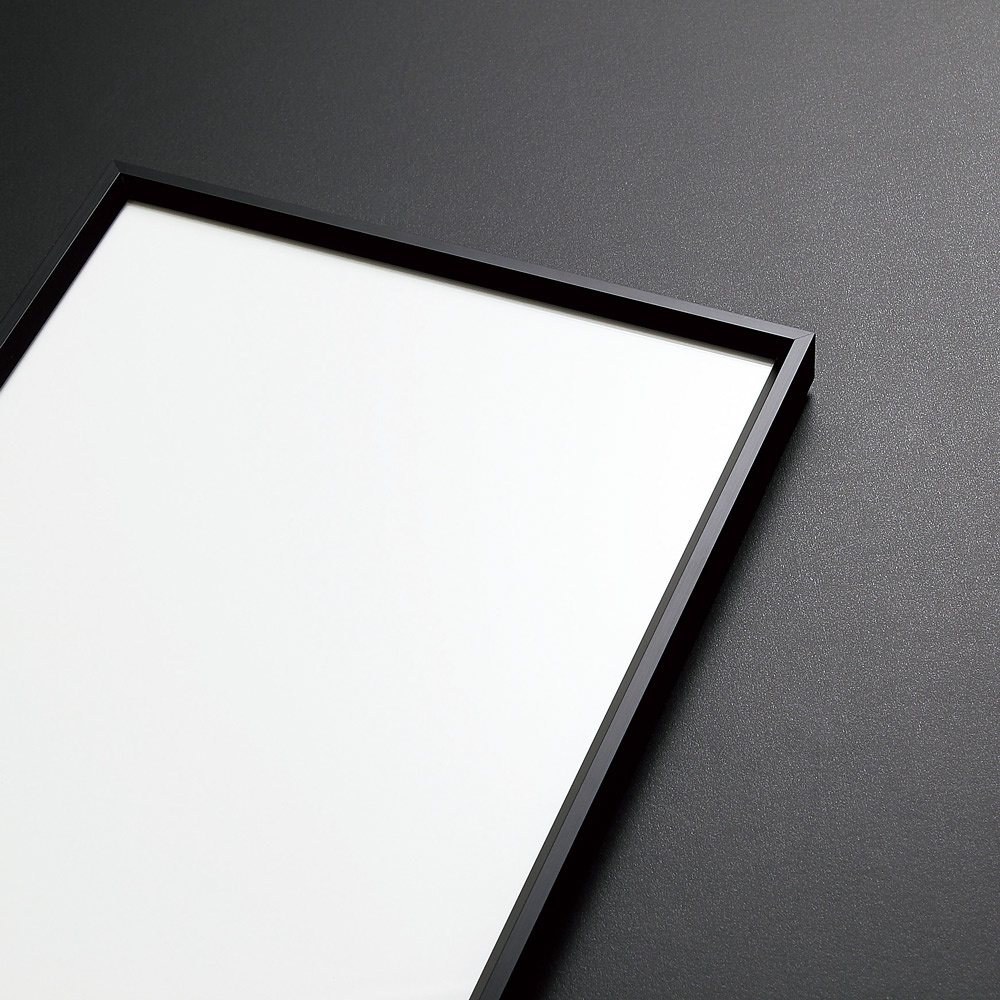 フレームを4辺開閉するスタンダードなパネルです。高級感があり、洗練されたイメージにピッタリです。 - 設置方法:直付け・壁掛け・吊り下げ(※B1以下でお願いします。)・スタンド