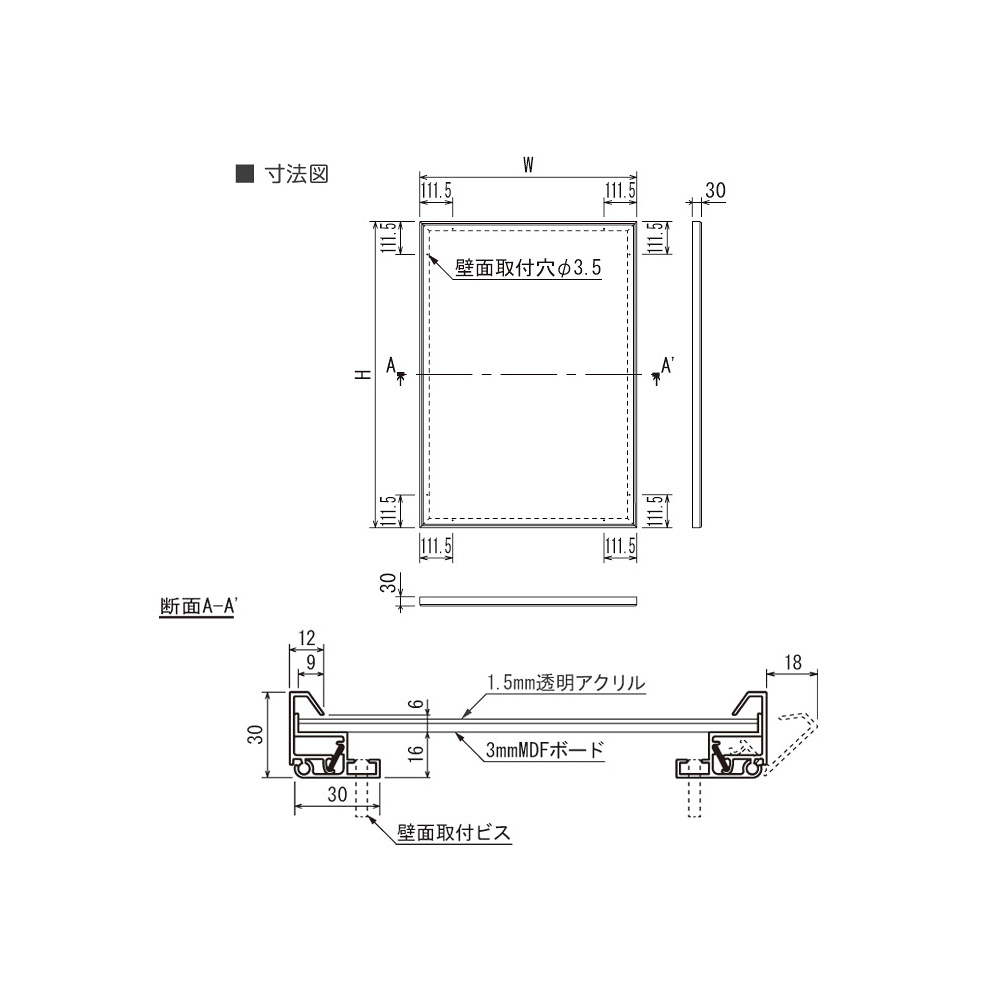 商品説明:ポスターパネル 345 スリム 4辺開閉式 角型