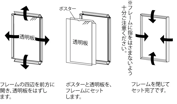 よくある質問:ポスターパネル 345 スリム 4辺開閉式 屋内用 角型 ブラック A1 (345-A1-K)