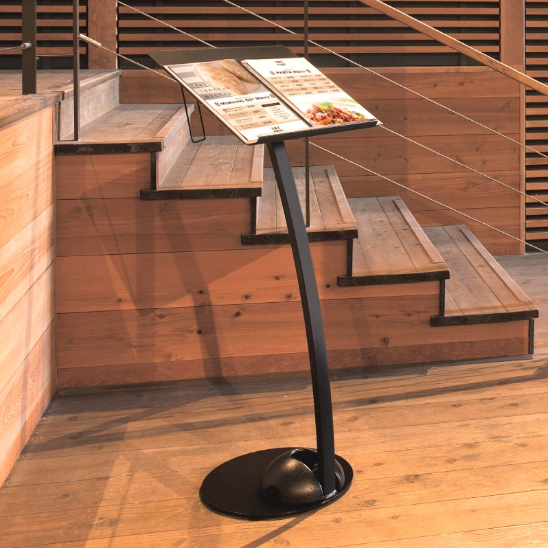 ●転倒や移動による事故防止のため、風のある場所でのご使用の際は動かないよう重りを乗せるなどの対策を行って下さい。 - メニュースタンド2368対応のオプション商品は、下記関連商品をご参照ください。