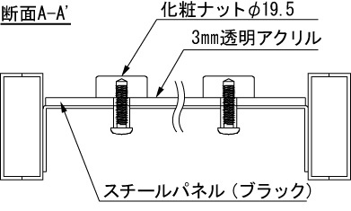 - 3mm透明アクリル/スチール塗装仕上(ブラック)