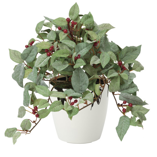 - 光触媒 人工観葉植物 造花 実付ローレル(フロック加工) (高さ25cm) (388G40)