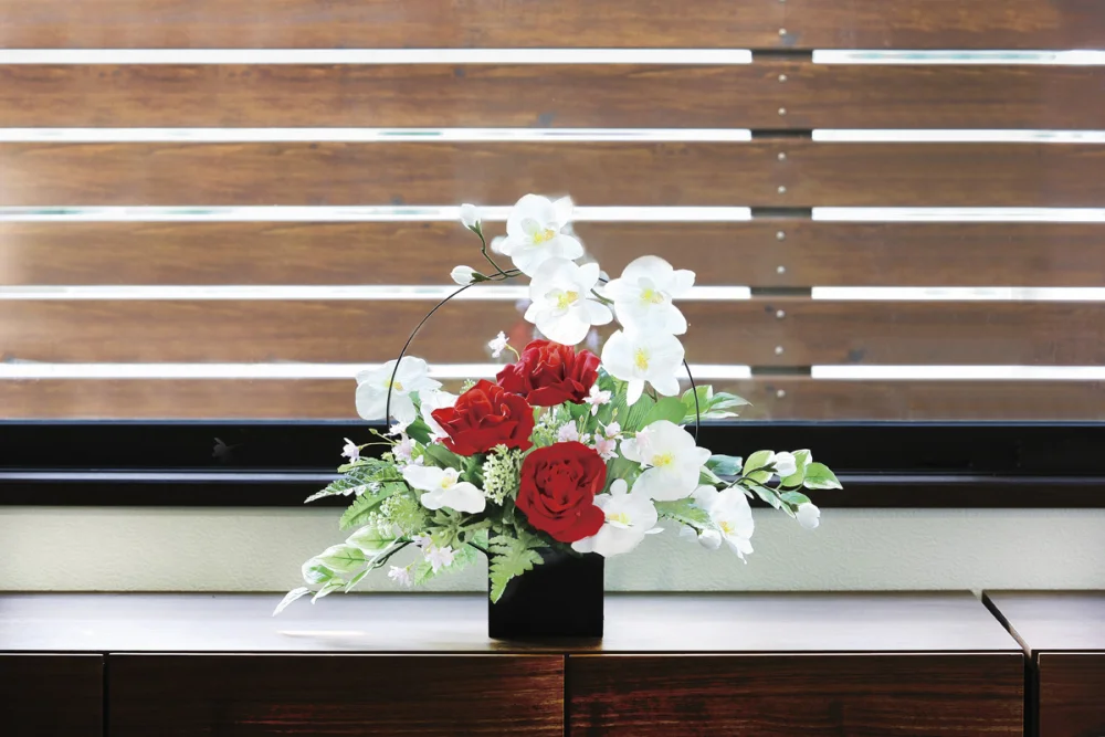 お迎えする空間に映える華やかで上品なアートフラワーです。