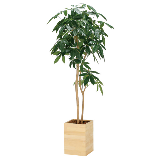商品説明:光触媒 人工観葉植物 造花 ウッドボックスパキラ1.6 (高さ160cm)