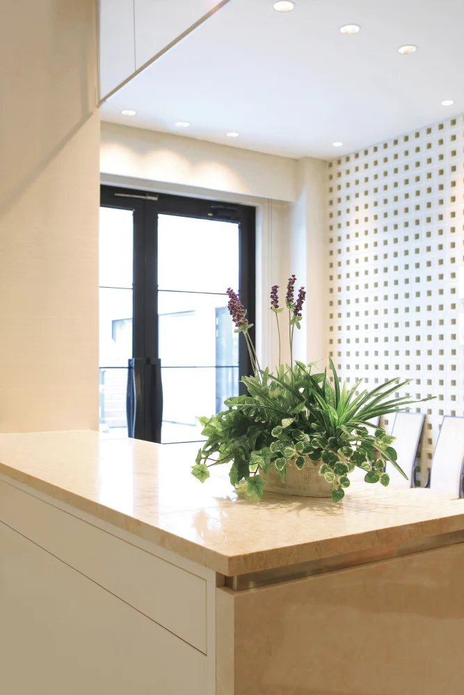明るい空間の中でグリーンが程良くアクセントになります。