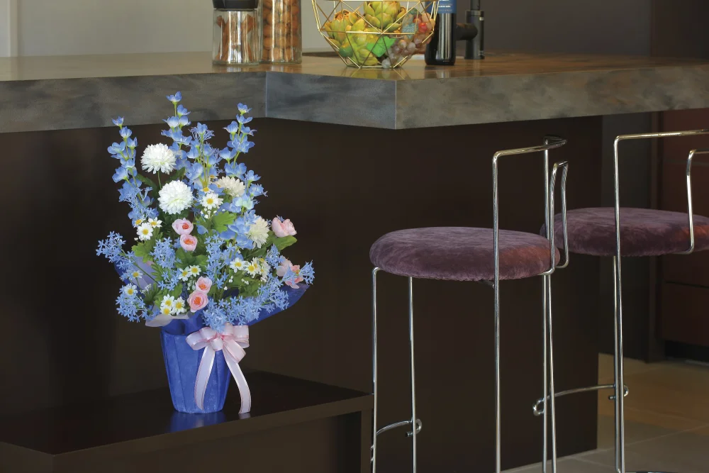 お迎えする空間に映える華やかで上品なアートフラワーです。