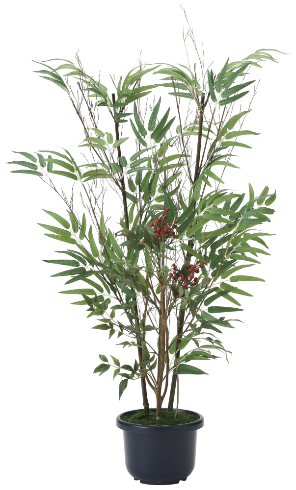- 光触媒 人工観葉植物 造花 黒竹&南天1.0(幹:天然黒竹) (高さ100cm) (2011R160)