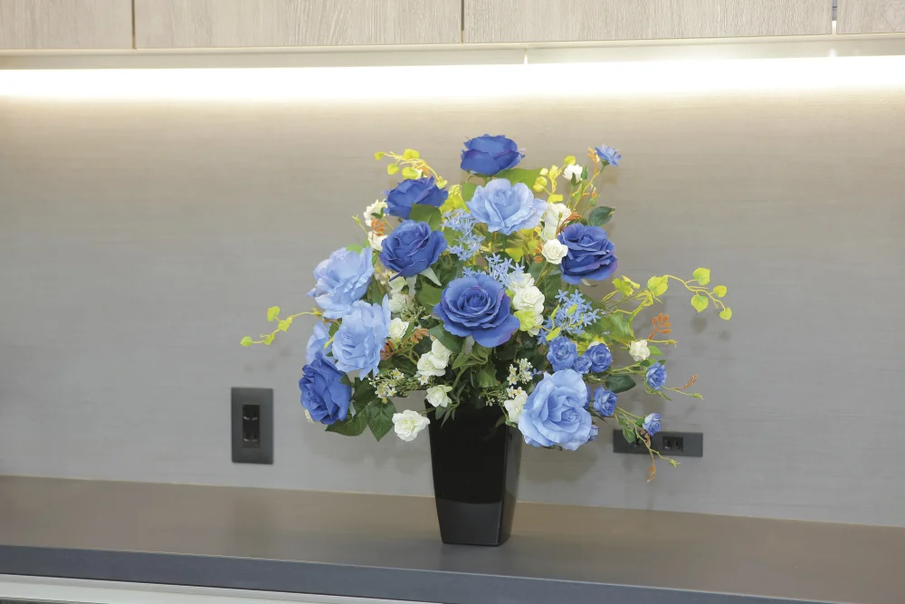 「光触媒 人工観葉植物 造花 ブルースターローズ (高さ55cm) (2373R150)」の導入をご検討中ですか? 大量注文・複数台のご検討に応じたお見積りのご相談、最短納期や送料、仕様・サイズの確認など、 造花(光触媒) テーブル(卓上)向け選びをまとめてサポートいたします。