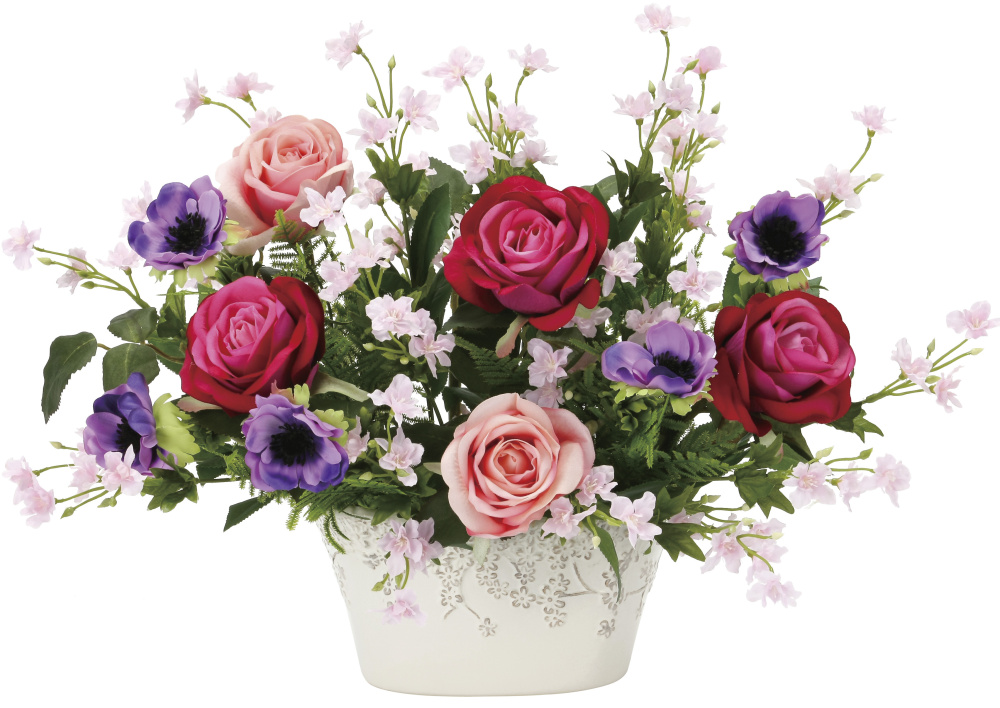 商品説明:光触媒 人工観葉植物 造花 ローズベール (高さ40cm) (2394P130)