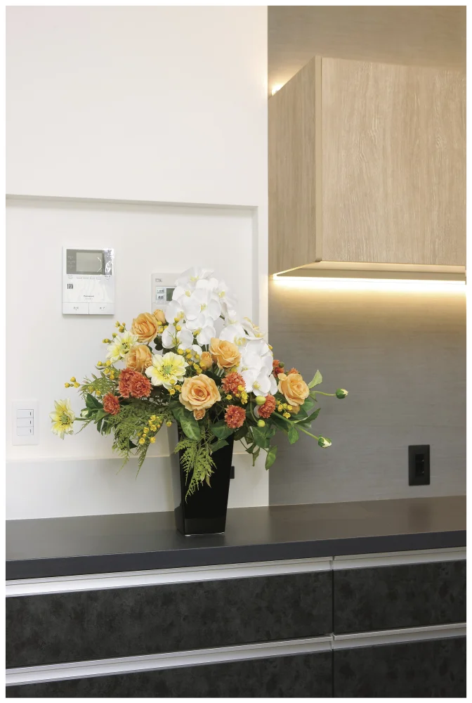 - 商品はポリエステルやポリエチレンを主とした素材でできています。生花ではございません。