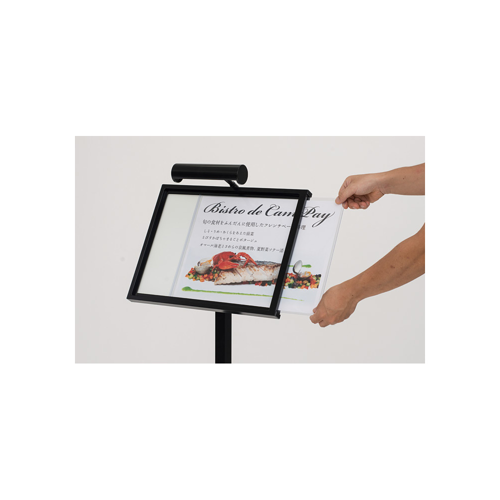 屋外対応LED付メニュースタンド A2タテ ブラック (ML-A2-LED-B)