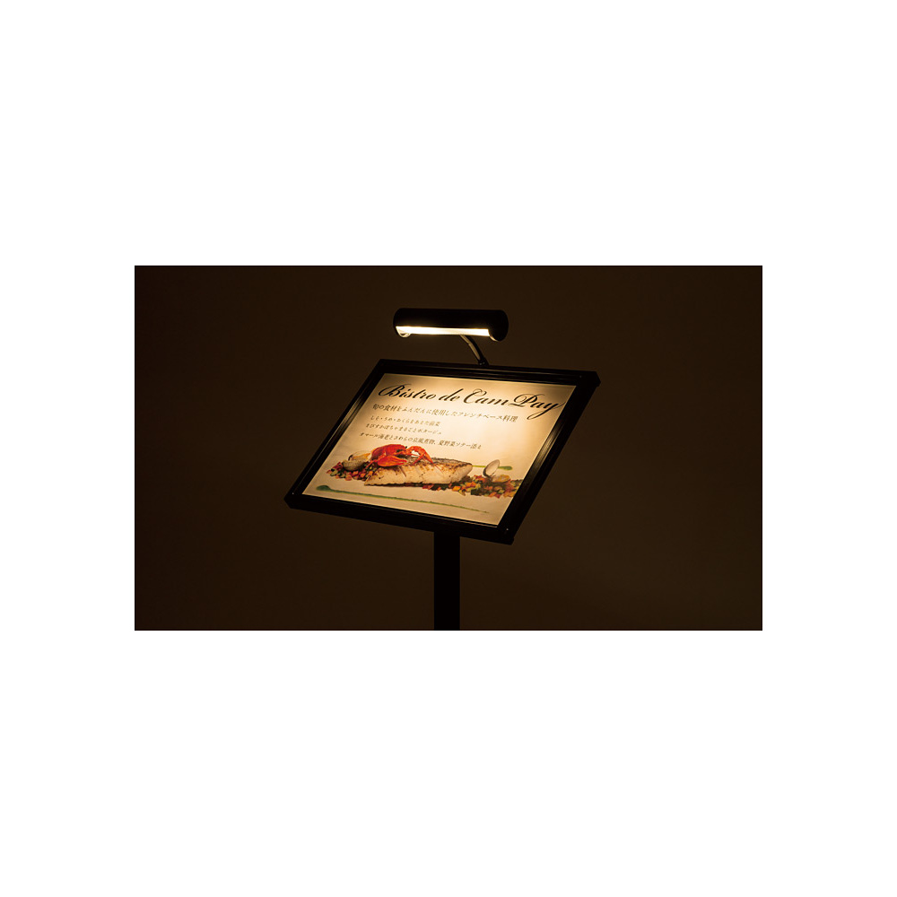 カードケースタイプで広告面の入れ替え楽々!暗い所でも安心の屋外対応LED付メニュースタンド