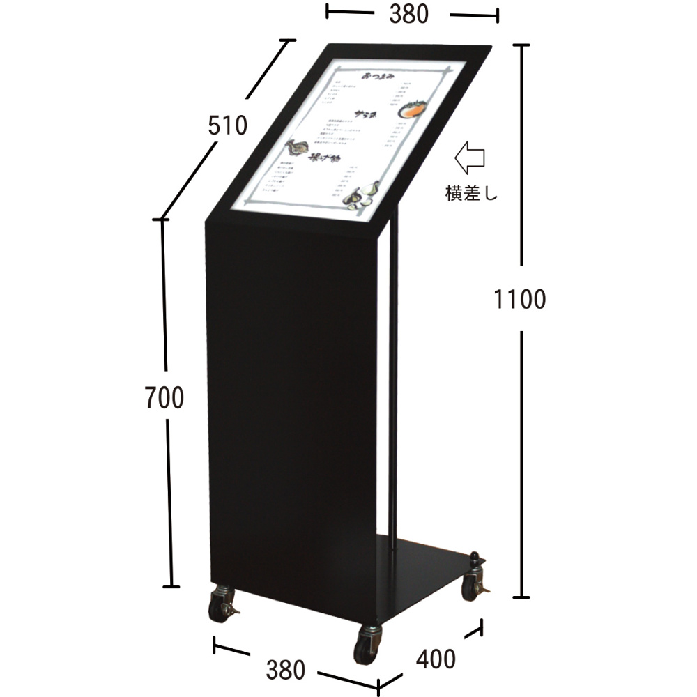 横差しでメニュー交換が簡単 !A3カードケース付きメニュースタンドです。