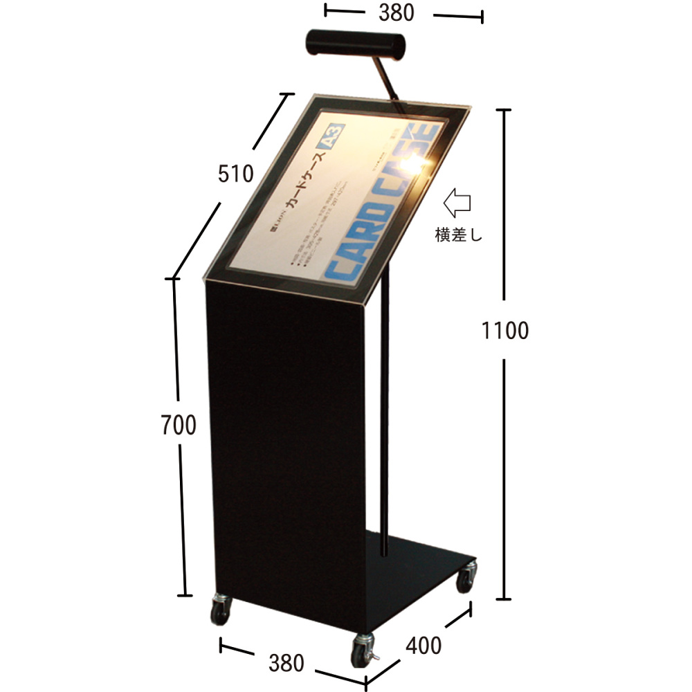 A3用カードケース付LEDメニュースタンド ブラック (ML-78-LED-B)