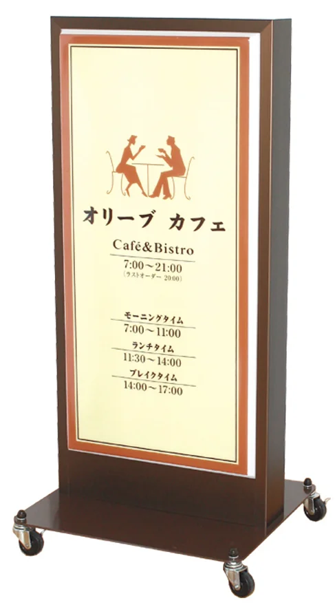 アルミ押出フレームとスチールベースで構成された電飾スタンド看板です