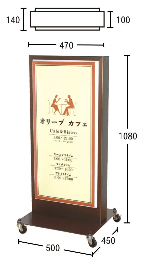 - 看板の設置場所にあまり余裕がない店舗に最適です。