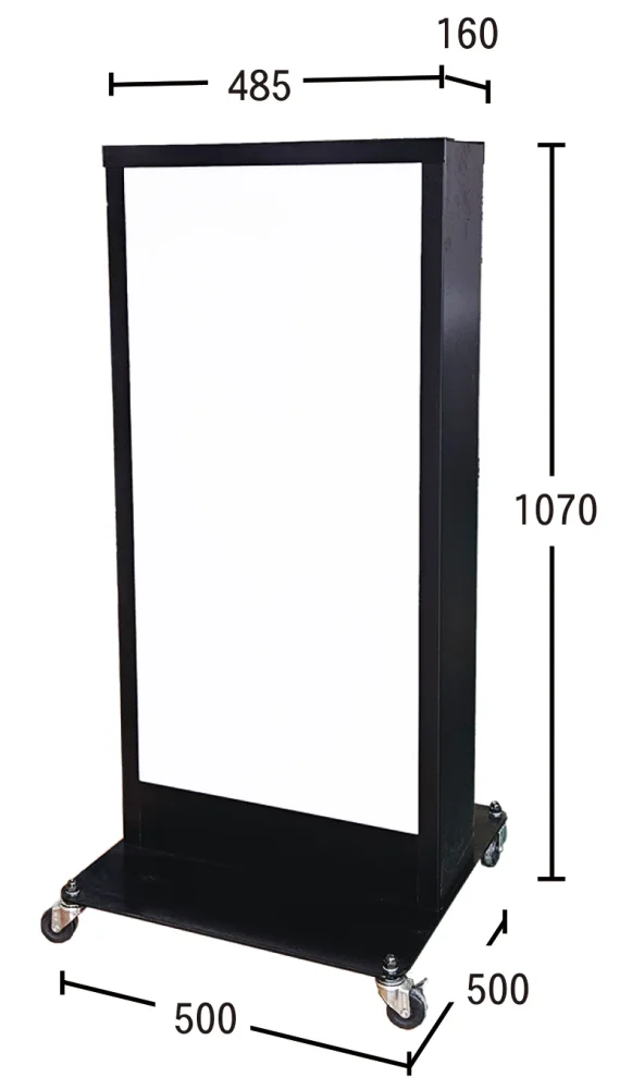 - 全高1070mmのコンパクトサイズながら、幅500mmのワイドボディで安定感のある電飾スタンド看板です。