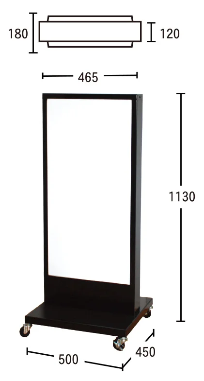 - 全高1130mmで店頭に程よい存在感をプラス。大きすぎず小さすぎないバランスの取れたサイズ感です。