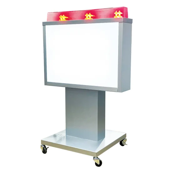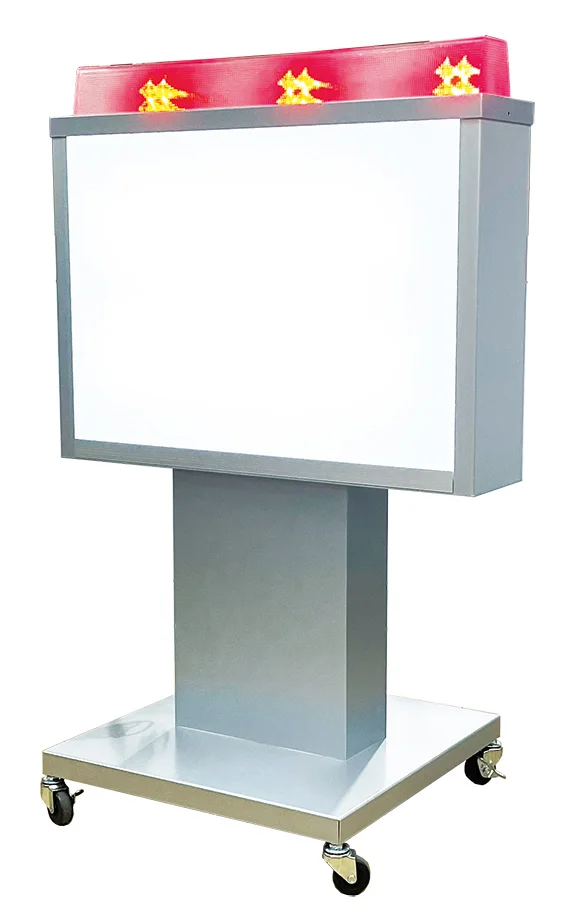 上部のLEDモジュール点滅で目を引き、表示面へ視線を自然と誘導するコンパクトな電飾スタンド看板です