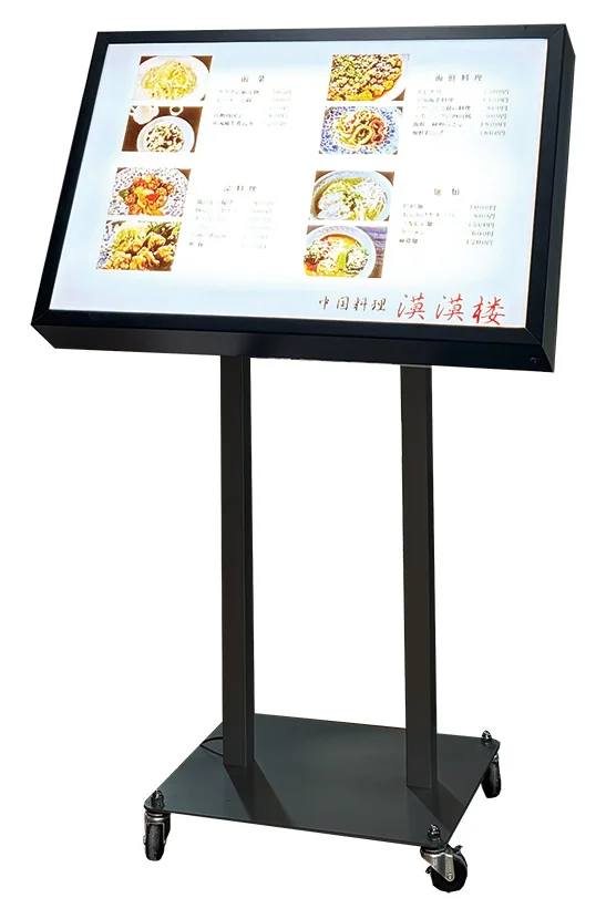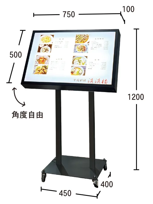 角度自由調整で見やすさ抜群。写真付きメニューや案内掲示にも最適なLED内照式メニュースタンド看板です