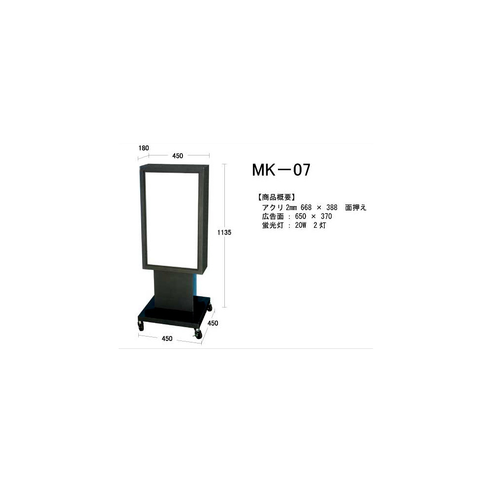 商品説明:電飾スタンド看板 ブラック 全高H1135タイプ (MK-07-BK)