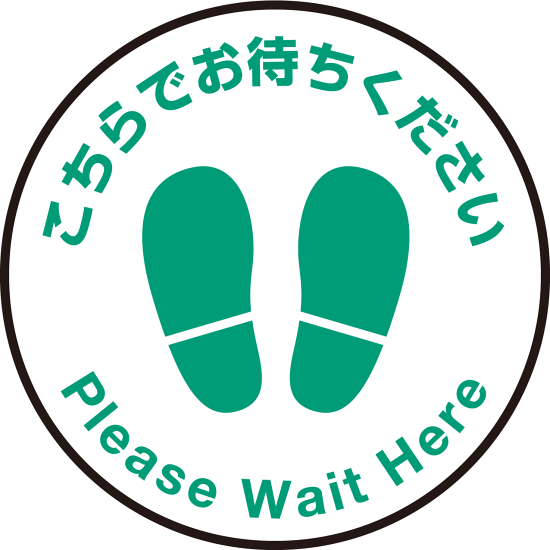 床面サイン フロアラバーマット 円形 こちらでお待ちください デザイン007 防炎シール付 Fタイプ 直径45cm (PEFS-007-F(45))