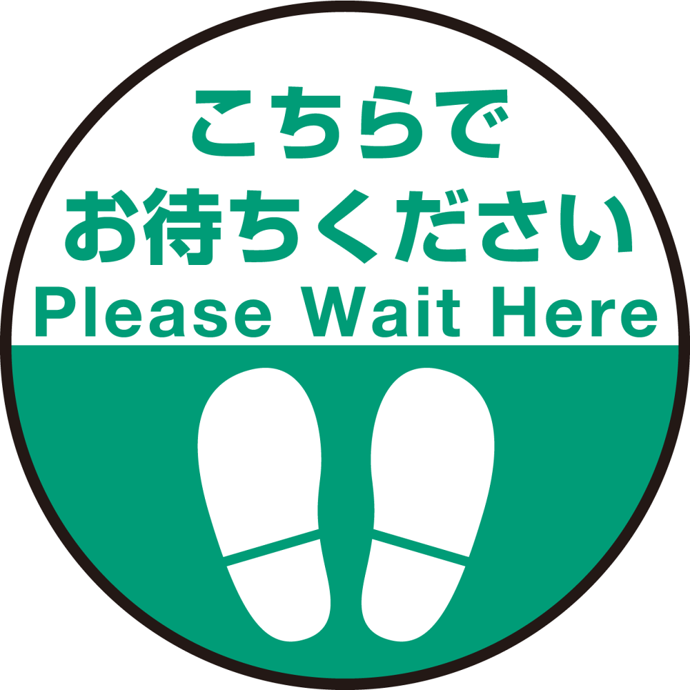床面サイン フロアラバーマット 円形 こちらでお待ちください デザイン008 防炎シール付 Cタイプ 直径40cm (PEFS-008-C(40))