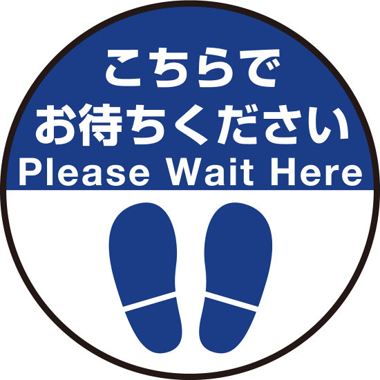 床面サイン フロアラバーマット 円形 こちらでお待ちください デザイン008 防炎シール付 Dタイプ 直径40cm (PEFS-008-D(40))