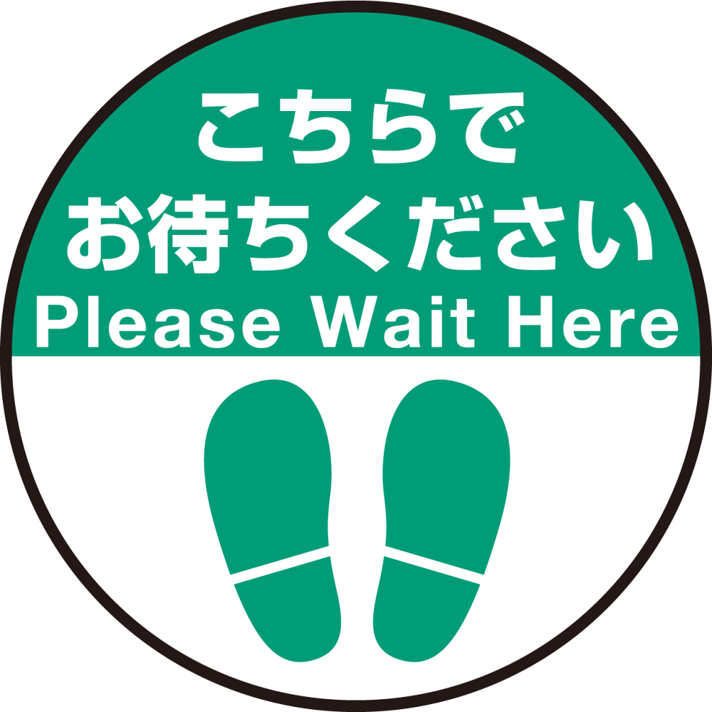 床面サイン フロアラバーマット 円形 こちらでお待ちください デザイン008 防炎シール付 Fタイプ 直径40cm (PEFS-008-F(40))